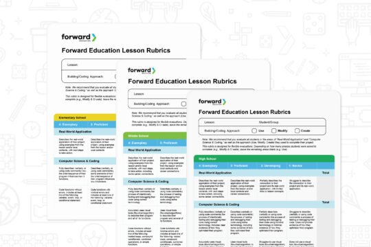 A printable rubric for elementary, middle, and high school evaluations. Use this resource with any lesson and project in Forward Education's ecosystem...